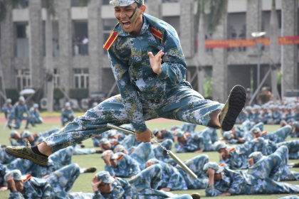 随着军训总结汇报大会总指挥一声令下,三名旗手踏着整齐的步伐护送beat365中文官方网站校旗走进跑道,足球场上口号嘹亮、步伐整齐、身姿矫健,新生们用分列式方阵、军体拳、擒敌拳、短棍术、花样木兰军等多种形式汇报展现了军训成果,较往年新增的擒敌拳和短棍术表演,充分展现了朝气蓬勃、斗志昂扬的当代大学生精神,尤其是短棍术表演中,女生们飒爽的英姿赢得了全场阵阵掌声。