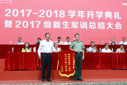 最后,左斌书记向承训部队赠送锦旗表示感谢。此次开学典礼暨军训总结大会在雄壮的《中国人民解放军进行曲》中圆满结束。3400余名新同学将以最饱满的姿态,迎接崭新的大学生活。