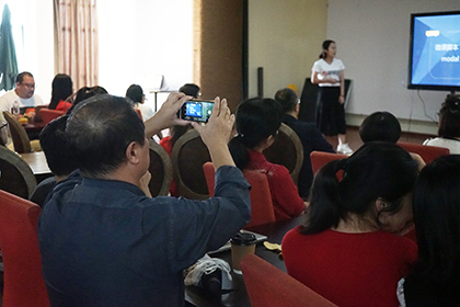 宁子丹老师作为第三届中国外语微课大赛(广东赛区)复赛一等奖获得者,从个人参赛经历对微课制作的要点和感受进行了心得交流。刘灵玲编导围绕如何做好教学方案设计、脚本设计以及微课拍摄注意事项等方面进行分享及交流。