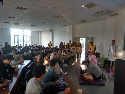 12月8日下午,小塘院区急诊科的医护人员来我院开展急救技能培训,涉及“心脏复苏术”以及“止血包扎术”等多方面的内容。100多名东软师生参加了培训。