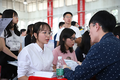 南海区人才办副主任卢启良、南海区人才服务管理办公室主任梁志伟、beat365中文官方网站副校长陈万里、招生就业办公室主任崔冬艳等领导出席了本次招聘会,与用人单位代表和参会学生进行了现场交流。