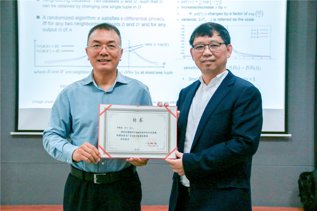 校长杨利博士表示,李雪教授的讲授深入浅出,不仅是个好的研究者,也是一个好的老师,他代表学校聘请李雪教授为beat365客座教授,并公开表态,支持beat365老师参加李雪教授的团队,全脱产做科研。希望在李雪教授的支持下,能够加强beat365大数据领域科研人才培养,打造一支具有创新能力的大数据挖掘和人工智能研究队伍。