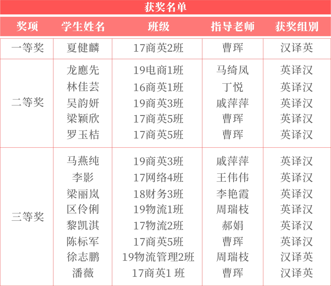 外院学子获第四届“普译奖”全国大学生翻译大赛汉译英组别一等奖