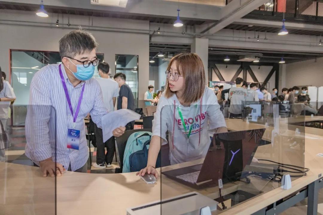科创展不仅是一次学生专业技能的集中展示与成果检阅,更是一次企业和学生互动交流的盛会。佛山智控未来科技有限公司技术副主管、公司核心设计人员陈灿琼,广东须臾科技有限公司董事长张杰,江苏省未来网络创新研究院运营总监邬伟江、营销总监欧侠、产品总监梁田等企业嘉宾莅临现场观展。