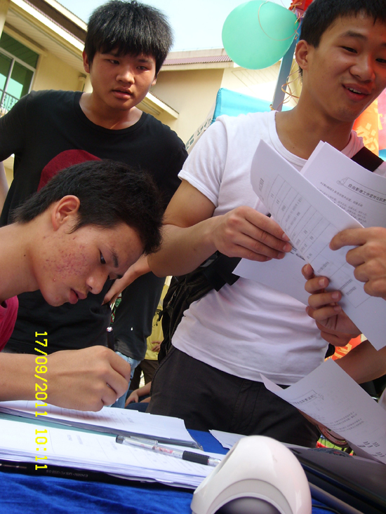 奥德科技也是一家“老牌”企业。该公司的COO(人力资源总监)林俊浩也是大三学生,他在招聘现场忙个不停,俨然一名成熟的职业经理人形象。2009年10月,林俊浩通过报名、笔试、面试 、考核(一次项目考核、一次日常表现考核)才转为行政部正式职员;2010年11月,他竞争上了COO。经过一年多的锻炼,他获益匪浅,目前已确定毕业后在一家通信公司工作。